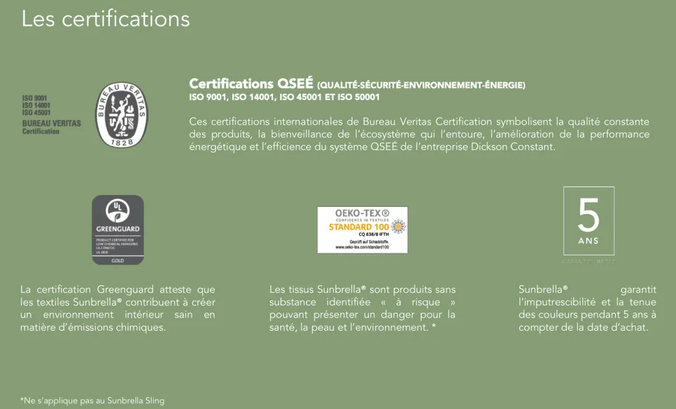 Comme la couleur va jusqu’à l’âme des fibres Sunbrella, les tissus Sunbrella peuvent être nettoyés avec des solvants du type eau de Javel sans perdre leur couleur.