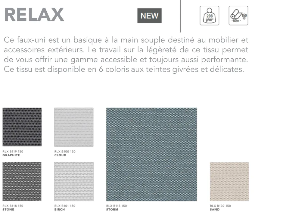 Nous utilisons ces tissus pour nos réalisations de coussin et matelas sur mesure aussi bien pour l’extérieur que pour l’intérieur. Avec leur large gamme de texture et couleur, nous pouvons répondre à la grande majorité des demandes de nos clients particuliers et professionnels. Tous les tissus Sunbrella sont tissés à partir de fibre acrylique teint masse ce qui garantie à ces toiles une résistance exceptionnelle des coloris aux altérations des UV.