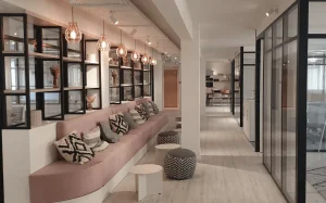 Cette banquette est destinée à un coin repas pour les médecins d’un cabinet en région parisienne. L’utilisation d’un simili skai permet un entretien facile