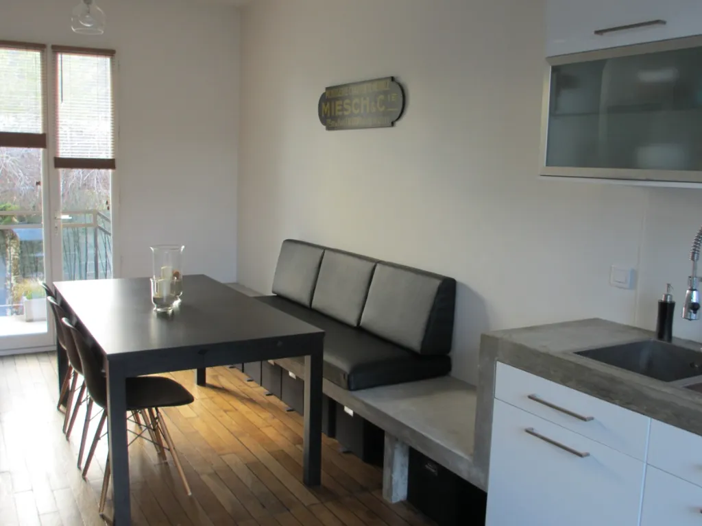 Cette banquette est destinée à un coin repas pour les médecins d’un cabinet en région parisienne. L’utilisation d’un simili skai permet un entretien facile