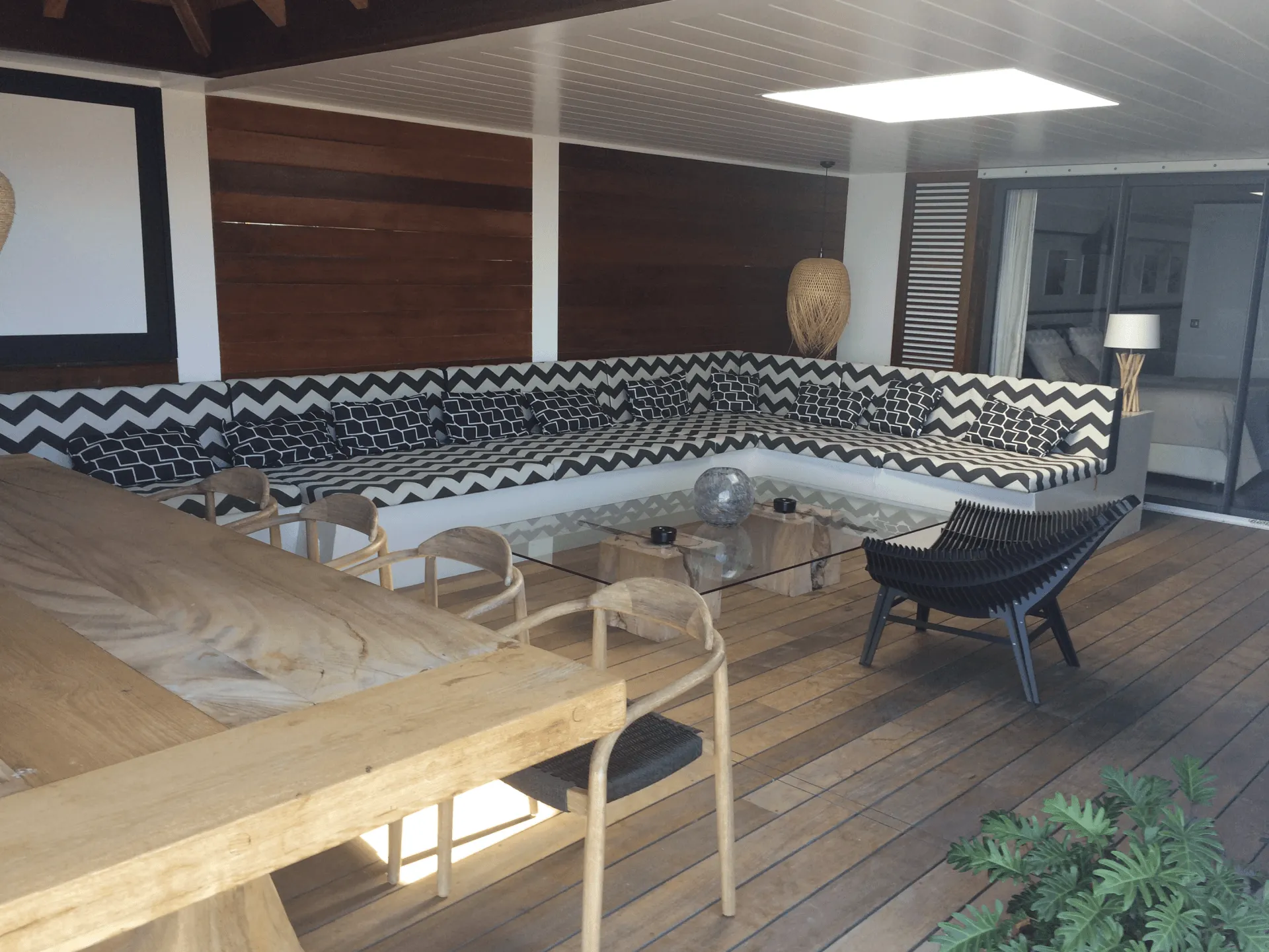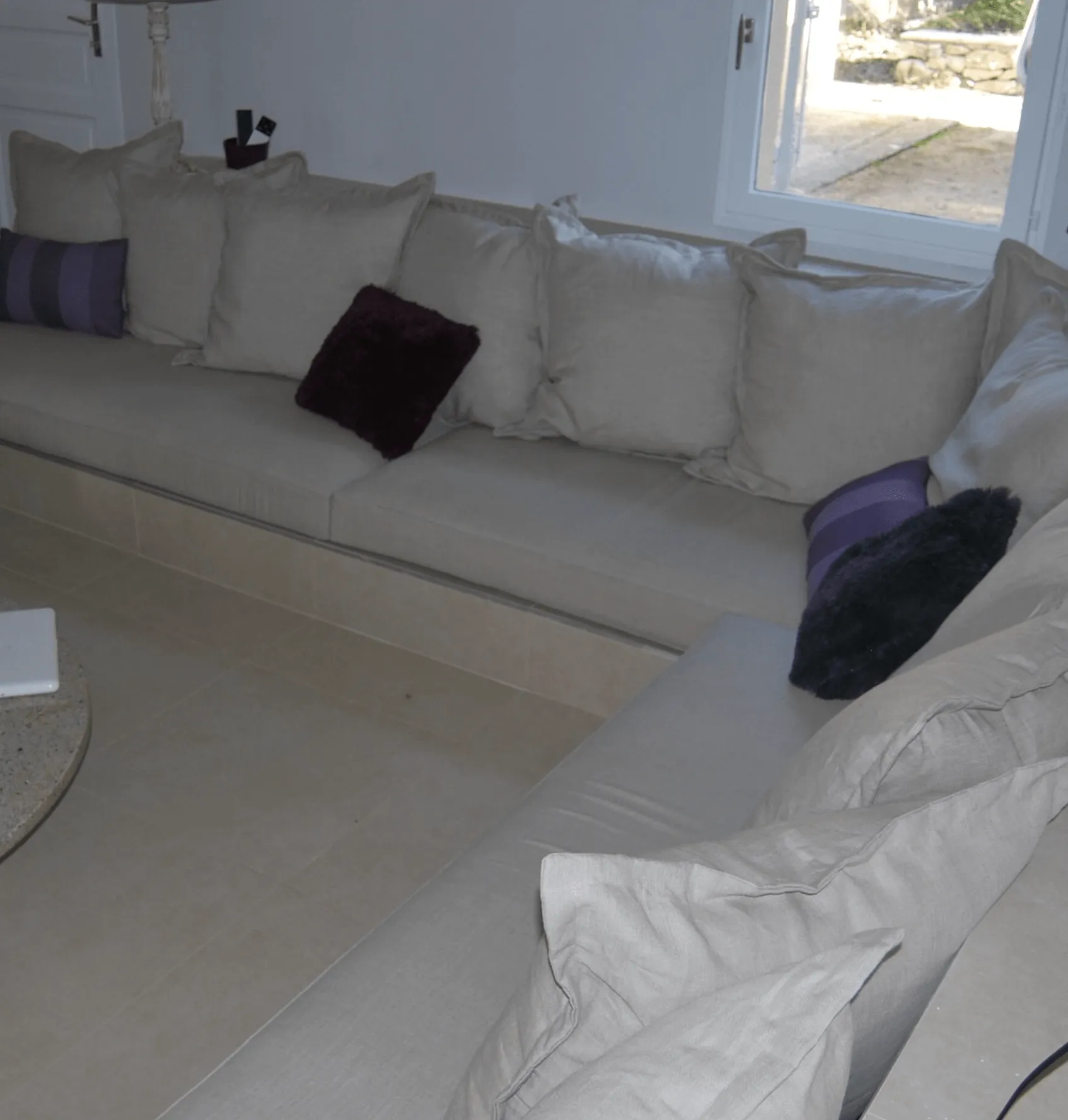 Tissu anti-tâche pour faciliter l’usage de cet espace. Toutes nos housses sont déhoussables avec des fermetures à glissière. Possibilité d’antiglisse ou velcro sous les coussins pour les stabiliser.