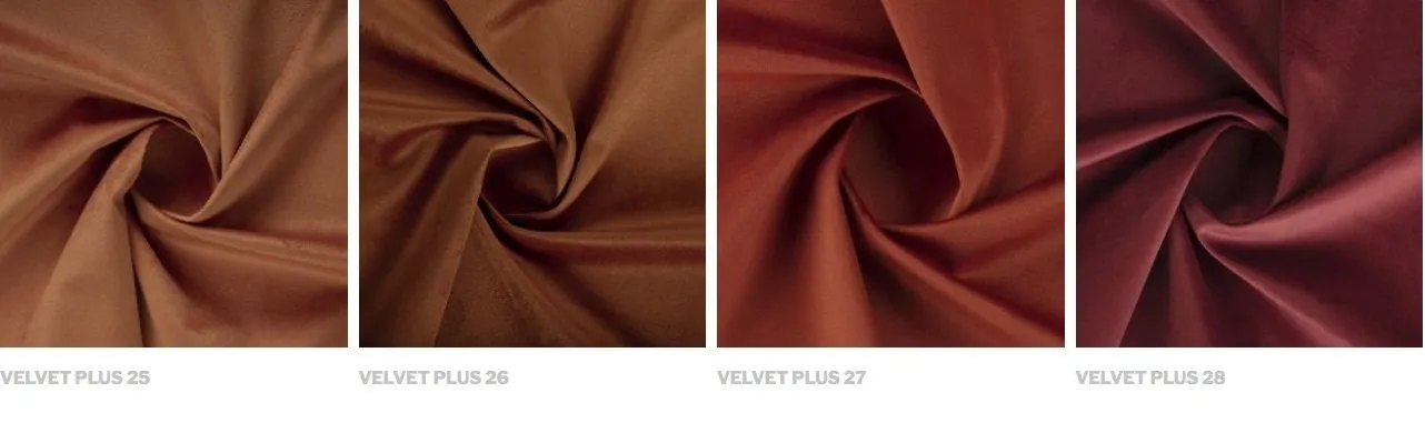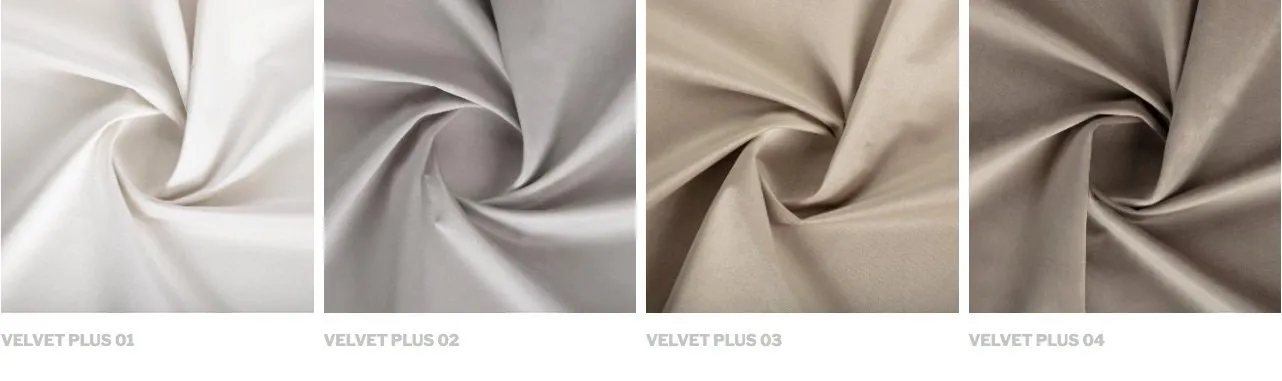 Velours au toucher très doux. Composition 100 % polyester. Excellente résistance dans le temps, son traitement déperlant contre les tâches facilite son entretien.