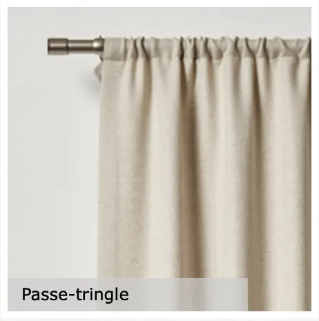 Les rideaux sur mesure sont un véritable élément de décoration de votre pièce. En plus des oeillets souvent choisis pour leur facilité d’usage, nous vous proposons d’autres type de finition :